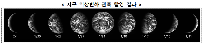 ▲ 다누리의 지구 위상변화 관측 촬영 결과. [과학기술정보통신부 제공] |