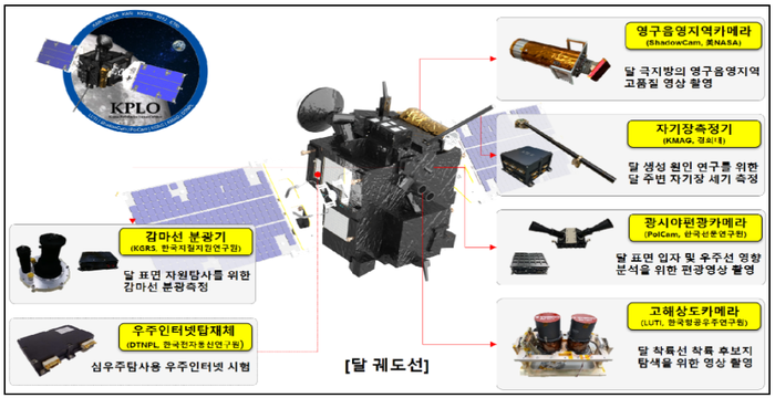 ▲ 다누리의 6개 임무 탑재체 [과학기술정보통신부 제공] |