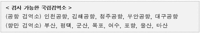 7~11월 공‧항만 13개 검역소서 무료 신속진단검사 실시