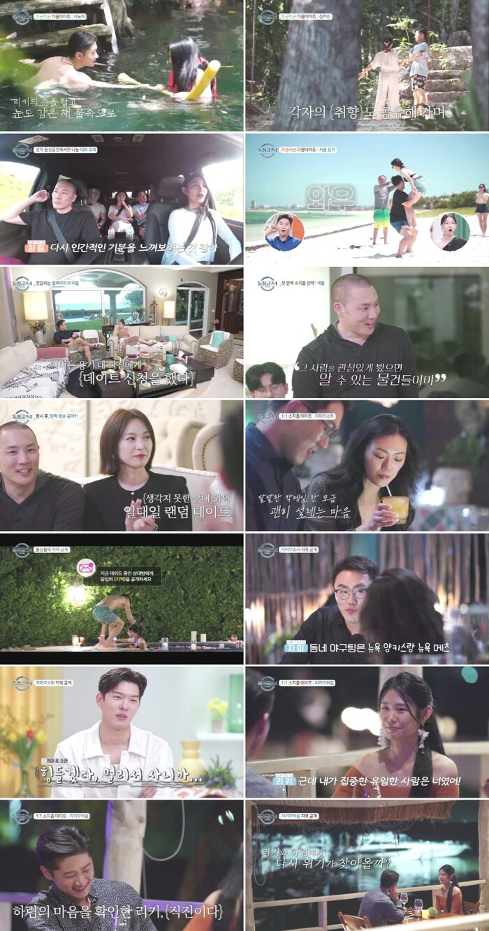 20일 방송한 MBN 간판 연애 예능 ‘돌싱글즈4’ 5회에서는 멕시코 칸쿤에 위치한 ‘돌싱하우스’에 모인 미국 출신 돌싱남녀 듀이-리키-베니타-소라-제롬-지미-지수-톰-하림-희진이 셋째 날 5:5로 짝을 이뤄 더블데이트를 진행. 상대를 향한 자신의 마음을 내비쳤다. 이후 돌싱남들이 돌싱녀들의 소지품을 골라 진행한 ‘1:1 소지품 랜덤 데이트’가 시작되는 동시에, 데이트 중인 상대방에게 기습적인 ‘지역 공개’를 감행하며 흥미를 폭발시켰다.