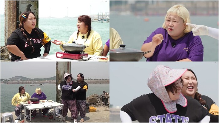 잠시 후, 선장님은 꽃게가 가득 담긴 박스를 하사(?)한다. ‘홍주부’ 홍윤화는 살이 통통 오른 꽃게들을 제대로 찌는 비법을 알려주며 꽃게찜과 꽃게탕을 만들기 시작한다. 꽃게가 익어가는 동안 4인방은 갑자기 “누가 가장 비만인가?”를 두고 설전을 벌인다. 특히 풍자는 “난 고비(고도 비만), 그리고 우리 중 한 명은 초고비(초고도 비만)”이라며 신기루에게 팩폭을 날린다. 하지만 신기루는 덤덤하게 고개를 끄덕이면서 “사실 병원에서도 간호사들이 허리를 엉덩이로 착각해 척추에 주사를 놨다”고 웃픈 썰을 방출한다. 이에 홍윤화도 “저도 허리에 주사만 몇 번 맞았다”라고 폭풍 공감한다. 급기야 신기루는 “허리에 주사 안 맞으려고 결국 속옷을 무릎까지 내렸다”라고 셀프 폭로해 현장을 초토화시킨다.