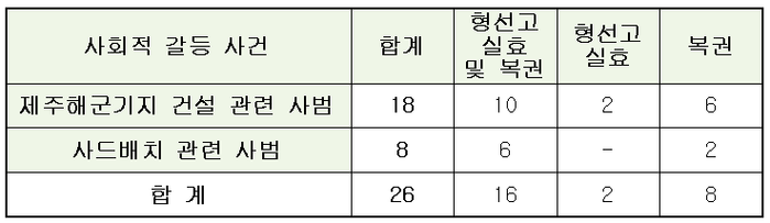 ▲ 사회적 갈등사건 관련자 26명. [출처= 법무부] |