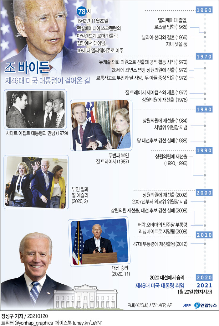 | ▲ 조 바이든 제46대 미국 대통령이 걸어온 길. [그래픽= 연합뉴스] |