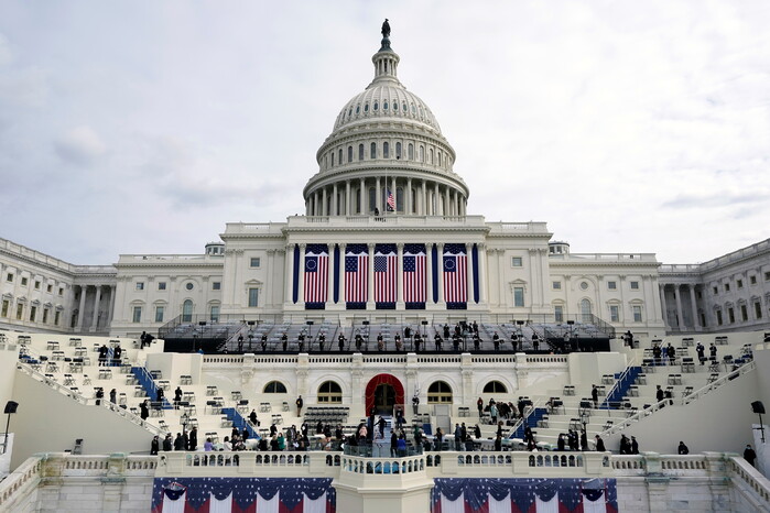 코로나19 확산과 도널드 트럼프 대통령 지지자들의 의회 난입 사태 이후 폭력사태 재발 우려로 여느 대통령 취임식과는 달라진 풍경이 연출된다.
