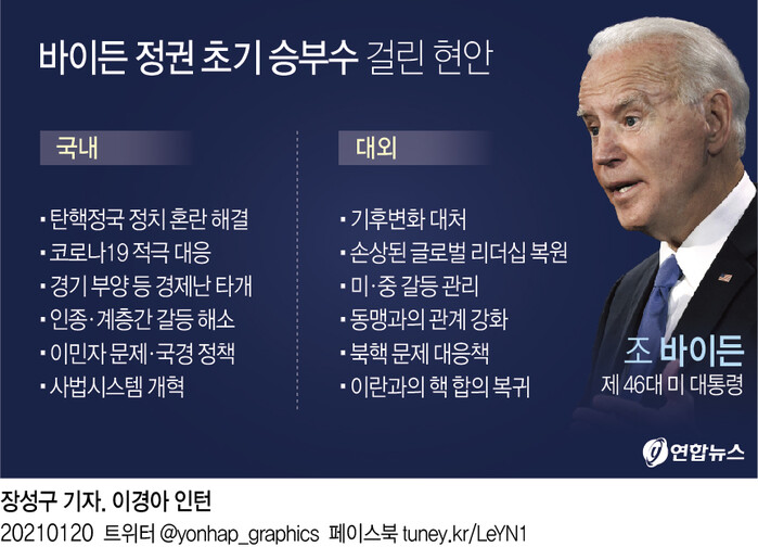 | ▲ 바이든 정권 초기 승부수 걸린 현안. [그래픽= 연합뉴스] |