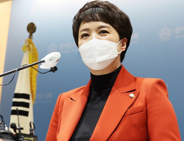 ▲ 국민의힘 6·1 지방선거 경기지사 후보로 선출된 김은혜 의원이 22일 오전 경기도 수원시 경기도의회에서 기자회견을 하고 있다. [수원=연합뉴스] |