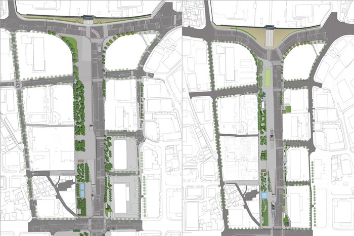| ▲ 광화문광장 당초 배치도(왼쪽)와 변경된 배치도. [출처=서울시] |