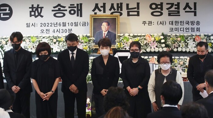 이후 설운도, 현숙, 문희옥, 이자연, 김혜연, 신유, 배일호가 고인의 노래인 ‘나팔꽃 인생’을 조가로 불렀고, 유재석, 조세호, 이수근, 임하룡, 이상벽, 전유성, 양상국 등 후배들이 헌화하고 목례로 마지막 인사를 건넸다.