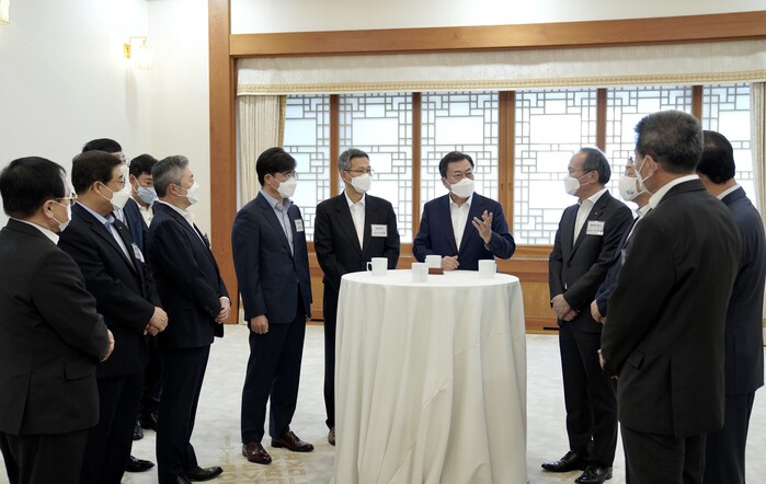 문 대통령은 “혁신을 제약하는 과도한 규제를 풀고, 투자에 대한 세제 인센티브도 더욱 효과적으로 개선해 달라”며 “산업계가 선제적으로 사업 재편에 나설 수 있도록 지원체계도 강화하겠다”고 밝혔다. 그러면서 “기업의 투자 현장을 계속 방문할 것”이라고 덧붙였다.