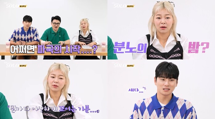 여기에 다시 솔로녀는 “아이고, 이 사람아! 마음이 딴 데로 가 있는데..”라고 솔로남에게 큰 한 방을 날리고, 이후 ‘솔로나라 16번지’는 걷잡을 수 없는 ‘혼돈의 카오스’에 휩싸인다. 데프콘은 “이거 휘발유야!”라고 탄식하더니, “커플 지라시가 돌고 있다고 한다”라고 ‘가짜뉴스 경계령’을 내린다.