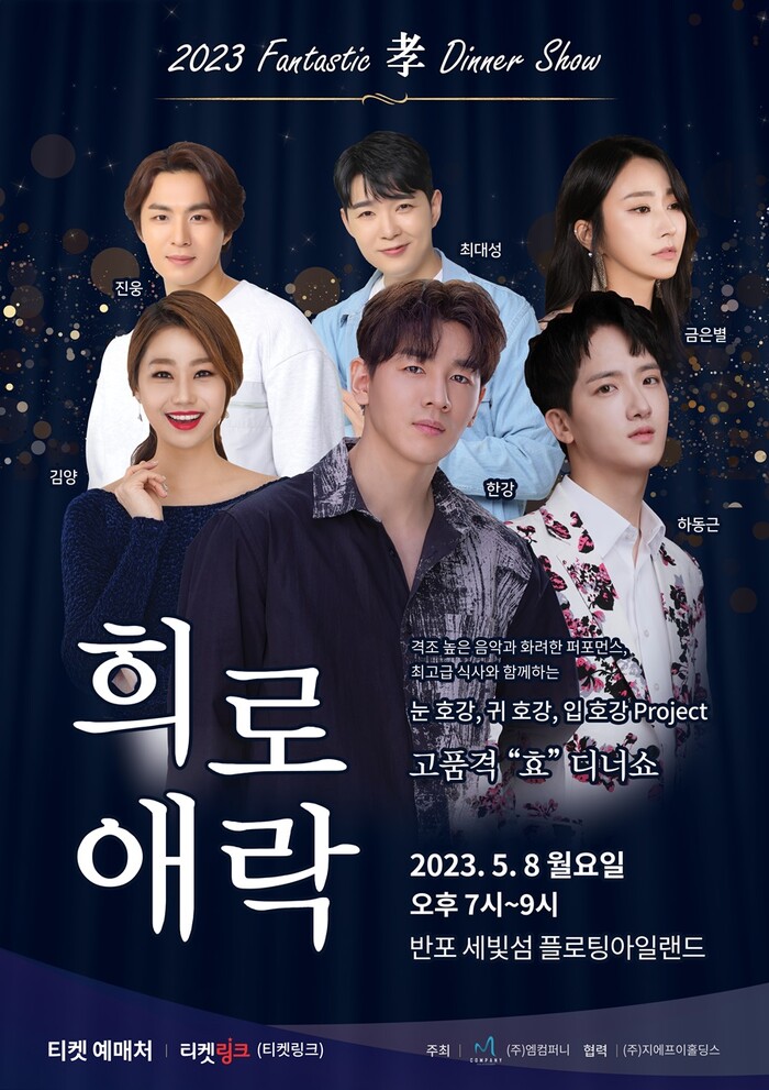 김양-한강-진웅-최대성-금은별-하동근 등이 뭉친 ‘2023 판타스틱 효(孝) 디너쇼-희로애락’이 오는 5월 8일(월) 오후 7시 서울 반포 세빛섬 플로팅아일랜드에서 관객을 만나는 것.