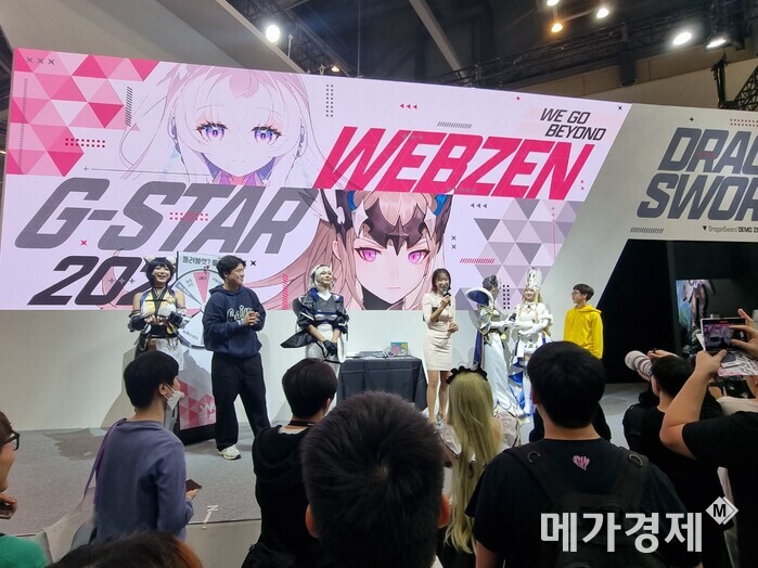 [메가경제=정호 기자] 웹젠이 14일 부산 벡스코 지스타2024에 특설 무대를 마련하고 드래곤소드·테르비스의 특설 무대를 마련했다.