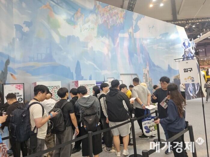 | ▲ 드래곤 소드를 체험하기 위해 관객들이 긴 줄을 형성하고 있다.[사진=메가경제] |