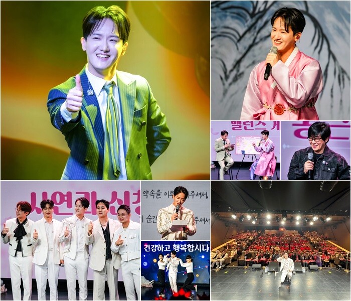 그런가 하면 TV조선 ‘내일은 미스터트롯’ 직장부를 통해 인연을 맺은 ‘수학 일타강사’ 정승제도 하동근 지원사격에 나서 눈길을 끌었다. 그는 이날 공연장을 찾아준 관객들을 위해 ‘역조공’이자 답례품으로 ‘꿀 선물 세트’를 준비해 나눠줬다. 하동근의 데뷔곡 ‘꿀맛이야’에서 착안해 센스 넘치는 답례품을 ‘서프라이즈’로 기획한 것. 또한 정승제는 하동근의 공연 말미, 팬들의 뜨거운 ‘노래 요청’에 떠밀려(?) 무대에 등장해 자신의 트로트 데뷔곡 ‘어화둥둥’을 즉석에서 선보여 열띤 박수를 받았다. 나아가, 하동근의 공연 모습을 직접 카메라로 찍어, 공연 후 따로 ‘현장 스틸컷’을 선물하는 ‘찐 우정’을 과시했다.