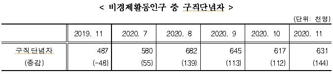 구직단념자는 63만1천명으로 14만4천명 늘었다.