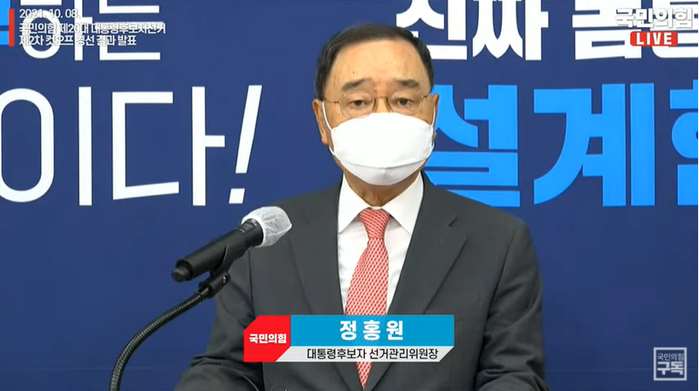 ▲ 2차 컷오프 결과 발표하는 국민의힘 정홍원 선관위원장. [국민의힘 유튜브 캡처] |