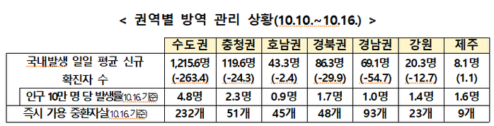 ▲ 권역별 방역 관리 상황. [보건복지부 제공] |