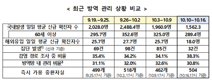 ▲ 최근 방역 관리 상황 비교. [보건복지부 제공] |