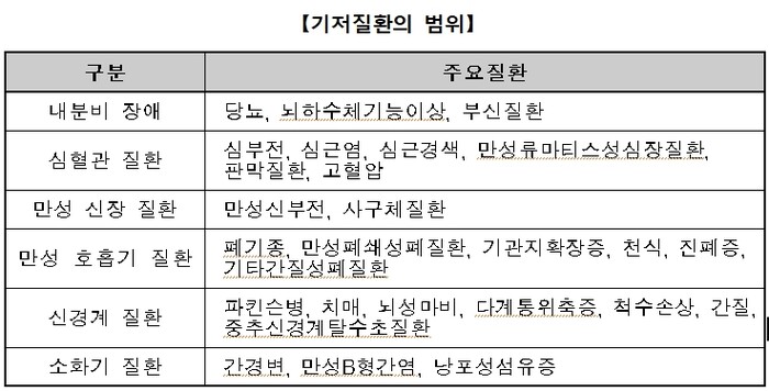 ▲ 기저질환의 범위. [질병관리청 제공] |