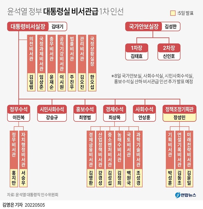 ▲ 윤석열 정부 대통령실 비서관급 1차 인선. [그래픽=연합뉴스] |
