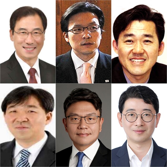 ▲ 왼쪽 위부터 시계방향으로 비서실장 직속 총무비서관으로 내정된 윤재순, 의전비서관으로 내정된 김일범, 국정과제비서관으로 내정된 임상준, 법률비서관으로 내정된 주진우, 공직기강비서관으로 내정된 이시원, 국정상황실장으로 내정된 한오섭. [사진=연합뉴스 , 인수위 제공] |