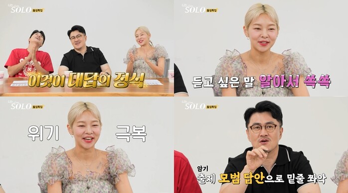 뒤이어 솔로남은 솔로녀가 갖고 있던 궁금증을 모두 해결해주며 확신을 심어준다. 가려운 부분까지 박박 긁어주는 ‘정답 자판기’급 대답에 3MC는 “캬~”라며 ‘물개박수’를 친다. 송해나는 “진짜 올바른 대답을 했다. 삐칠뻔 했는데 너무 괜찮은 대답이었네”라며 솔로남의 센스에 ‘엄지척’을 한다. 이이경은 “이건 외워야 돼”라고 극찬하고 데프콘은 “야~”라고 감탄하며 “‘이럴 때 이렇게 대답한다’의 모범답안이다. 돌싱 여러분들 이거 외우세요”라고 강조한다.