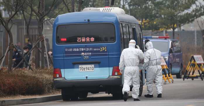 ▲ 23일 서울 송파구 서울동부구치소에서 방역복을 입은 관계자들이 분주하게 움직이고 있다. [사진= 연합뉴스] |