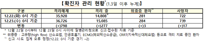 ▲ 23일 0시 기준 코로나19 위중증 환자 현황. [출처= 중앙방역대책본부] |