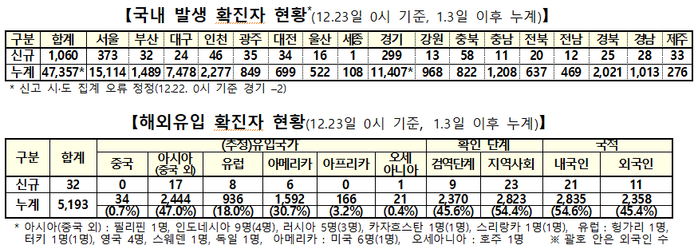 ▲ 23일 0시 기준 코로나19 국내발생(지역발생) 및 해외유입 현황. [출처= 중앙방역대책본부] |
