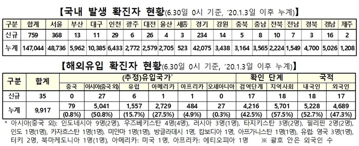 ▲ 30일 0시 기준 코로나19 국내발생(지역발생)과 해외유입 확진자 현황. [출처=중앙방역대책본부] |