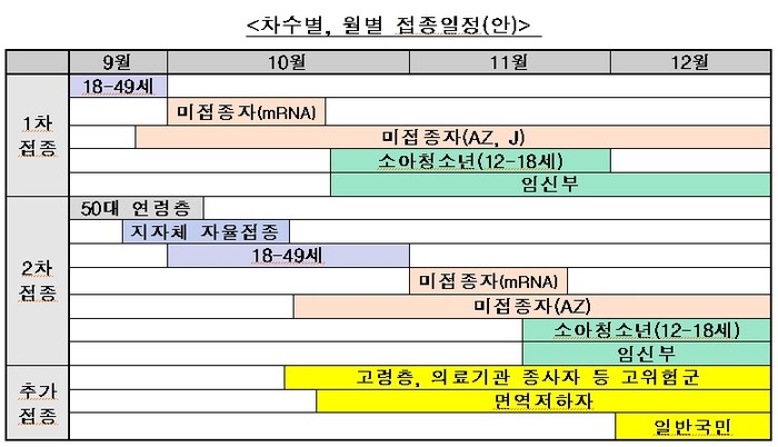 ▲ 4분기 차수별, 월별 코로나19 백신 접종 일정. [코로나19 예방접종대응추진단 제공] |