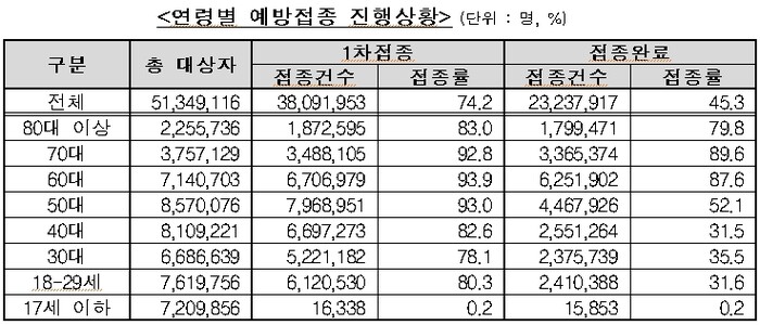 ▲ 연령별 예방접종 진행상황. [코로나19 예방접종대응추진단 제공] |