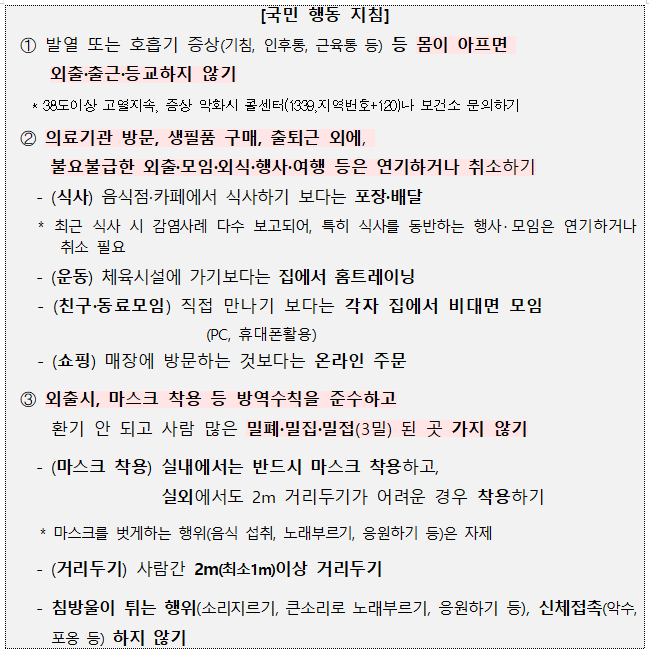 ▲ 국민 행동 지침. [출처= 중앙재난안전대책본부] |