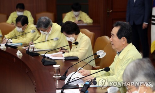 ▲ 정세균 국무총리가 15일 오후 서울 종로구 정부서울청사에서 열린 긴급 중앙재난안전대책본부(중대본) 회의에서 발언하고 있다. [서울= 연합뉴스] |