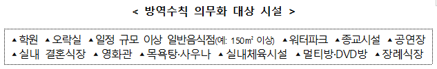 ▲ 방역수칙 의무화 대상 시설. [출처= 중앙재난안전대책본부] |