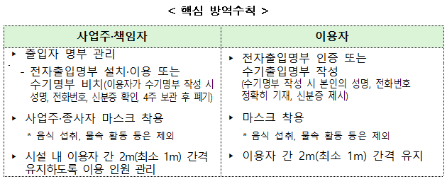 ▲ 핵심 방역수칙. [출처= 중앙재난안전대책본부] |