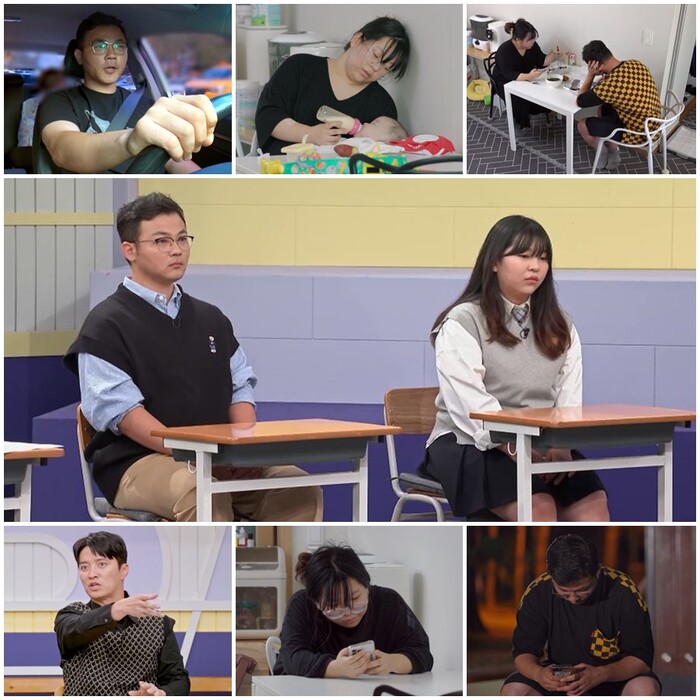 뒤이어 두 사람은 5개월 아이와의 일상을 공개하는데, 한 집에 있으면서도 서로 눈을 마주치지 않은 채 대화를 단절한다. 식사 자리에서도 두 사람은 각자의 휴대폰만 바라볼 뿐이다. 그러던 중 ‘청첩장’에 대한 이야기가 나오는데, 무미건조한 두 사람의 대화에 MC 박미선은 “결혼식이 아닌 장례식에 대한 논의를 나누는 줄 알겠어”라며 미간을 찌푸린다. 서장훈 또한 “이 상황에서 청첩장 이야기를 하는 게 맞는지 모르겠다. 이혼서류를 쓰는 분위기”라며 탄식한다. 선 출산, 후 결혼을 고려 중인 ‘대화 단절 부부’의 속사정이 무엇인지에 관심이 쏠린다.