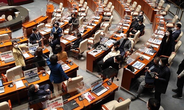 단독 처리 당시 회의는 민주당 간사인 맹성규 의원이 위원장 직무대리로 예결위를 소집해 진행했고, 회의장에 국민의힘 예결의원은 없었다. 현재 예결위원 50명 중 민주당 소속이 30명이고, 국민의힘 소속은 17명이다.