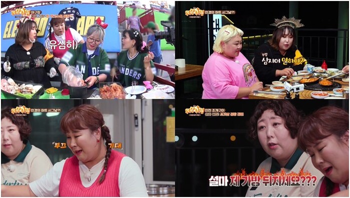 이날 성공리에 야구장 이벤트를 마친 이들은 허기진 배를 채우기 위해 곧장 인근의 조개구이 맛집으로 향한다. 푸짐한 조개구이를 주문한 4인방은 이후 폭풍 먹방에 돌입하고, 식사 중 풍자는 “우리 집이 조개구이 가게를 했잖아. 근데 우리 집 망했어”라고 돌발 고백한다. 이에 화들짝 놀란 김민경은 “아버지가 이 방송 보신다며?”라고 걱정하는데, 풍자는 “맞다. 아버지가 이 방송을 보시면서 ‘얼마 먹지도 못하는 애가 저렇게 잘 먹는 사람들 사이에서 얼마나 힘들까’라고 걱정하셨다”라고 답해 모두를 ‘말잇못’ 하게 만든다.