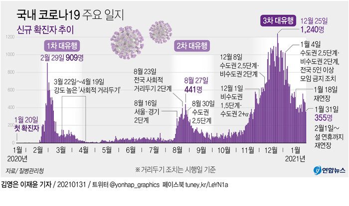 ▲ 국내 코로나19 주요일지. [그래픽= 연합뉴스] |
