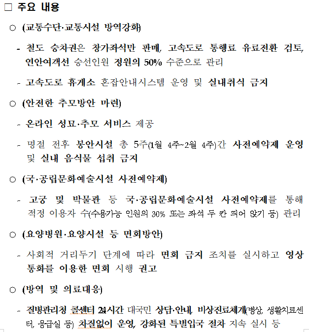 ▲ 설 특별방역대책 주요내용. [출처= 중앙재난안전대책본부] |