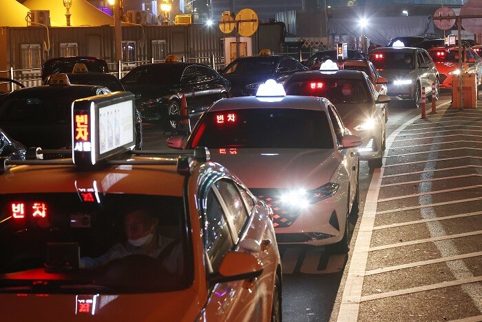 ▲ 심야에 서울역 택시 승강장에 택시들이 정차해 있다. [사진=연합뉴 스]