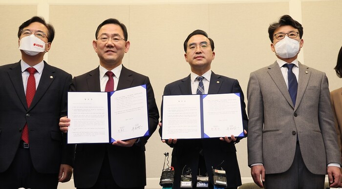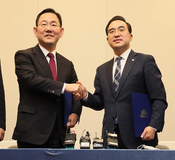 국민의힘 주호영 원내대표와 더불어민주당 박홍근 원내대표는 23일 오후 회동을 갖고 ‘용산 이태원 참사 진상규명과 재발방지를 위한 국정조사 실시’ 등 4개항에 합의했다.