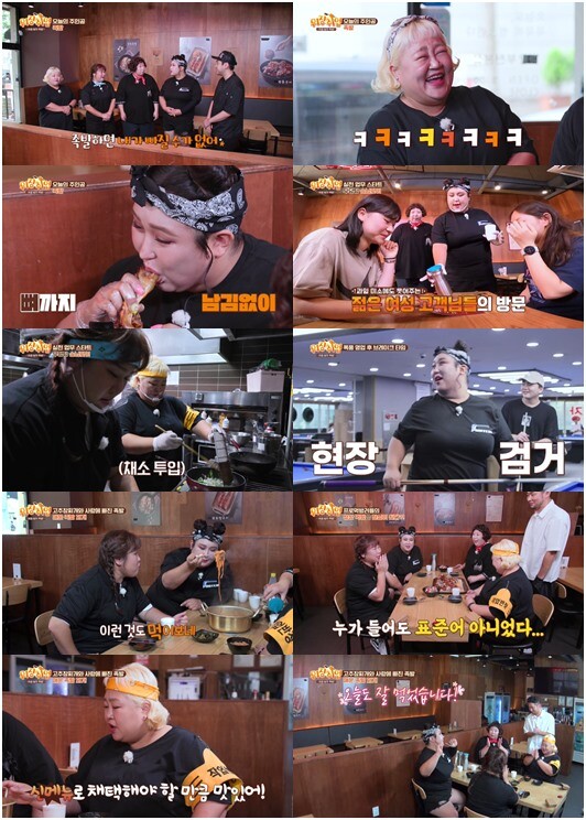 손님들이 밀려오자 ‘홀 팀’ 신기루와 풍자는 열심히 응대했다. ‘주방 팀’ 김민경과 홍윤화 역시 뜨거운 불 앞에서 꿋꿋이 요리하는 모습이 그려졌다. 풍자는 당구장으로 족발 배달을 하러 갔는데 훈훈한 남성 손님들의 모습에 바로 자리에 앉아 “저 음료수 하나만 줄 수 있냐”며 너스레를 떨었다.
