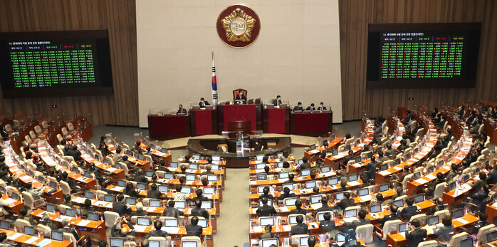 | ▲ 올해 1월 8일 오후 서울 여의도 국회에서 열린 본회의에서 '중대재해 처벌 등에 관한 법률안'이 가결되고 있다. [사진= 연합뉴스] |