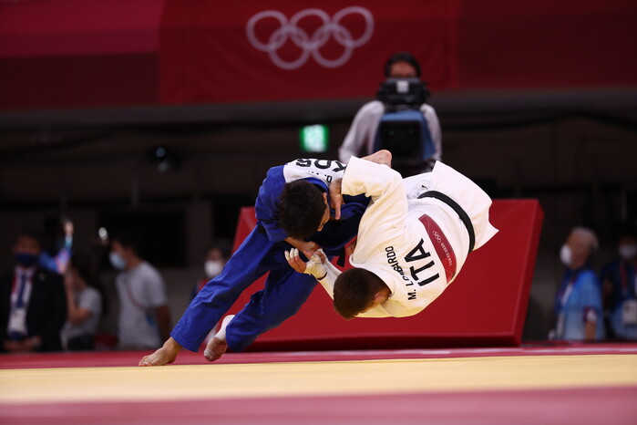 | ▲ 안바울이 25일 도쿄 지요다구 일본 무도관에서 열린 도쿄올림픽 유도 남자 66kg급 경기에서 세계랭킹 1위인 마누엘 롬바르도(이탈리아)를 주특기인 업어치기 한판으로 꺾고 있다. [도쿄=연합뉴스] |