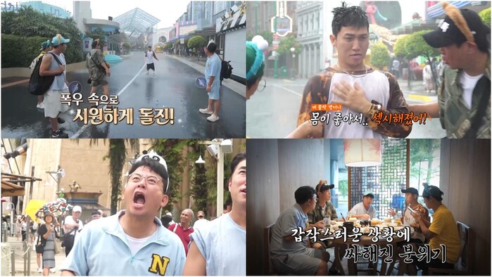 이날 ‘독박즈’는 놀이기구 탑승 때 줄을 서도 되지 않는 ‘익스프레스 티켓’을 1인당 17만원의 가격에 구입한다. 하지만 갑자기 폭우가 쏟아져 놀이기구를 못 타게 돼 모두가 ‘멘붕’에 빠진다. 이때 ‘지니어스’ 장동민은 ‘비 맞기’ 게임을 제안해, 피할 수 없으면 즐기는 ‘일류’의 모습을 보여준다.