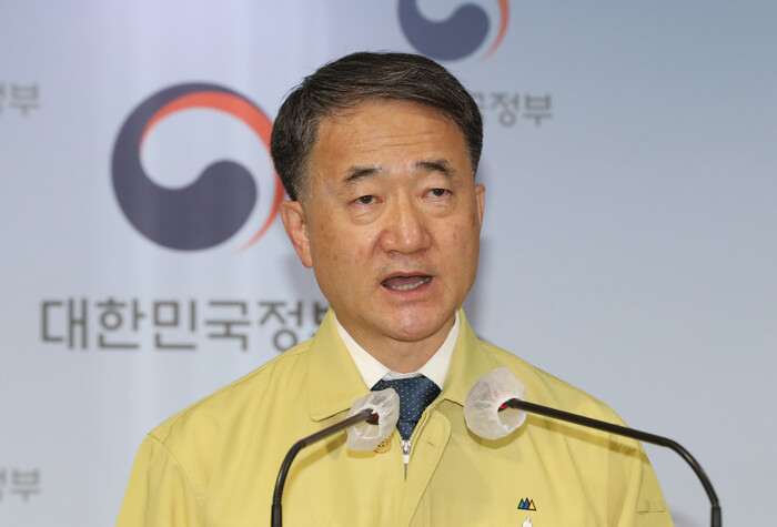 ▲ 중앙재난안전대책본부 1차장인 박능후 보건복지부 장관이 22일 오후 정부서울청사 브리핑실에서 코로나19 중대본 회의 결과 브리핑을 하고 있다. [사진= 연합뉴스] |