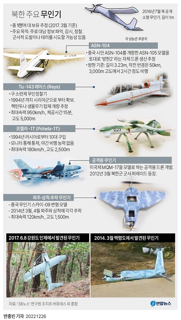 ▲ 북한 주요 무인기. [그래픽=연합뉴스] |