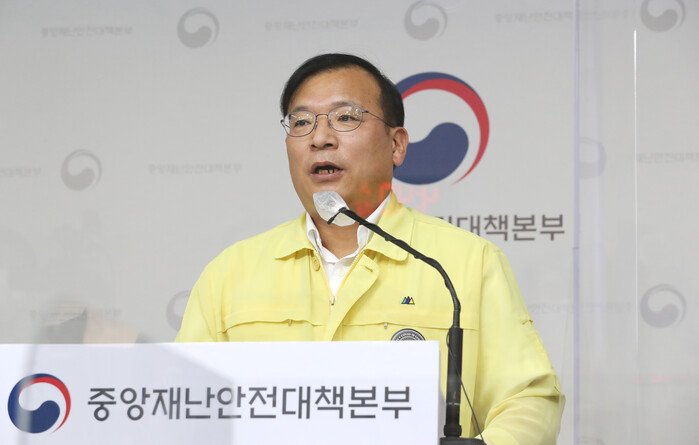 ▲ 강도태 중앙재난안전대책본부 제1총괄조정관(보건복지부 2차관)이 22일 오후 세종시 정부세종청사에서 열린 코로나19 대응 정례 브리핑을 하고 있다. [세종=연합뉴스] |